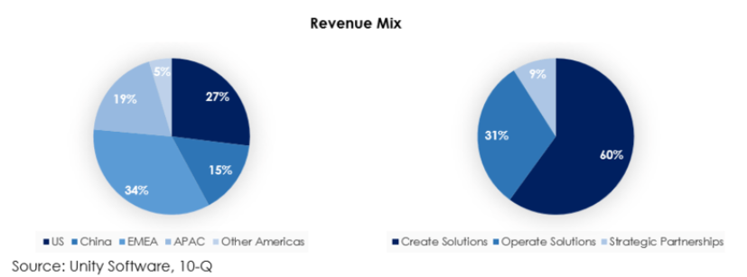 Unity Software은 아마추어 게임 디자이너부터 Electronic Arts(티커: EA), 닌텐도(티커: NTDOY), Take-Two Interactive(티커: TTWO), 텐센트(티커: TCEHY), Ubisoft(티커: UBSFY), 마이크로소프트(티커: MSFT), 엑티비전 블리자드(티커: ATVI), 소니(티커: SNE)와 같은 글로벌 게임 개발 회사까지 다양한 고객 기반을 확보하고 있습니다. 특히 글로벌 게임 회사들은 Unity Software가 막대한 수익을 창출할 수 있는 대규모 고객입니다.